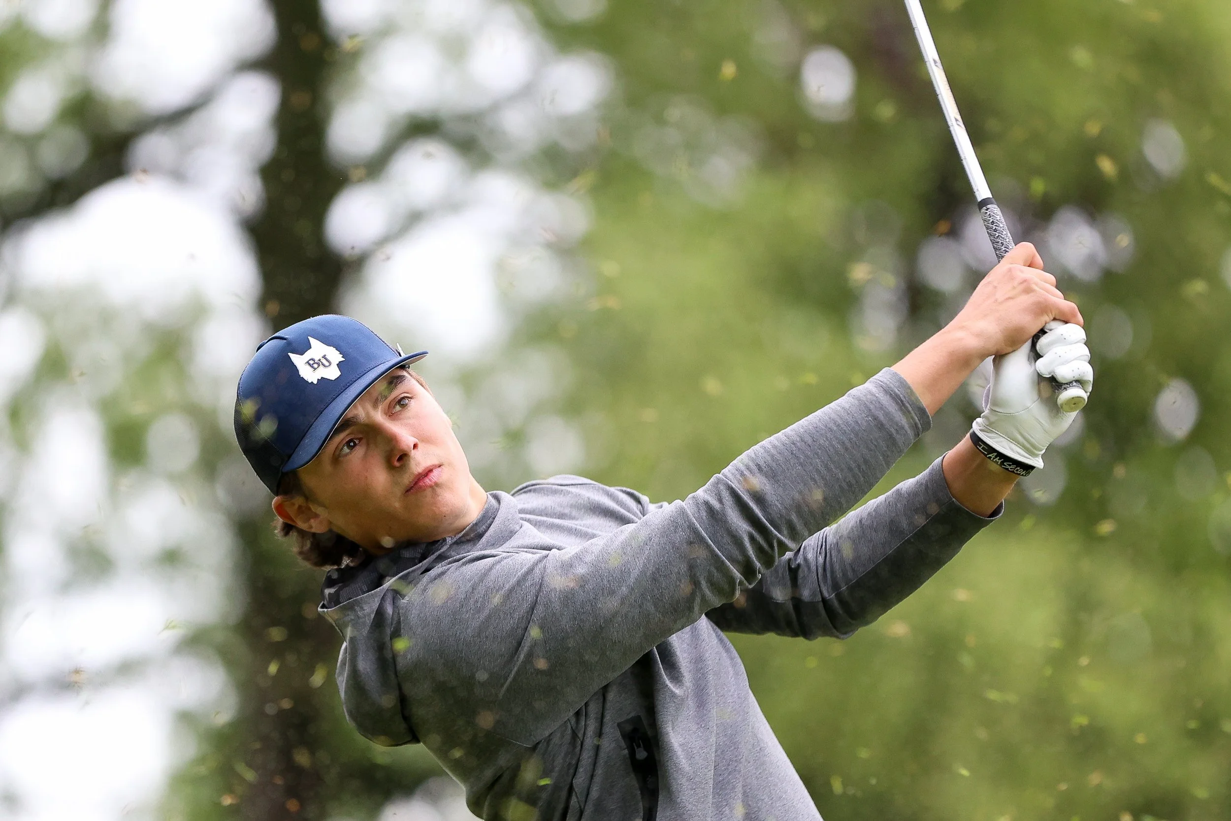 After a storm rolls through Penfield, New York causes a four hour delay, Eddie Coffren of Lynchburg wins the Men’s Division III Individual golf championship after six holes.